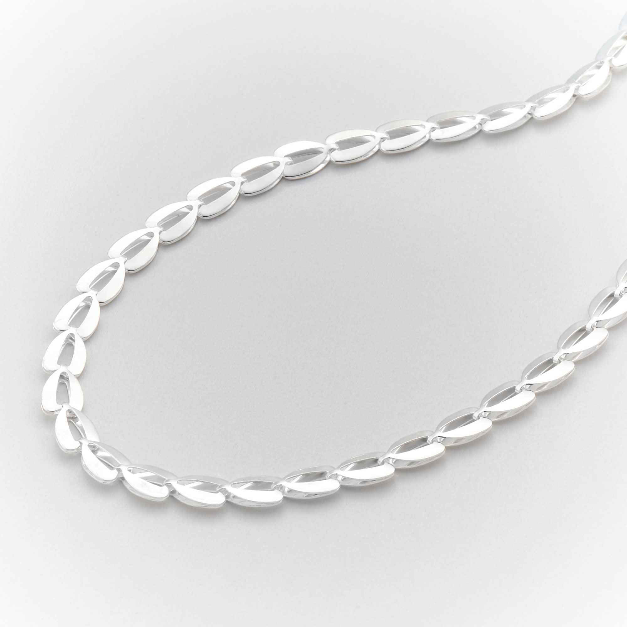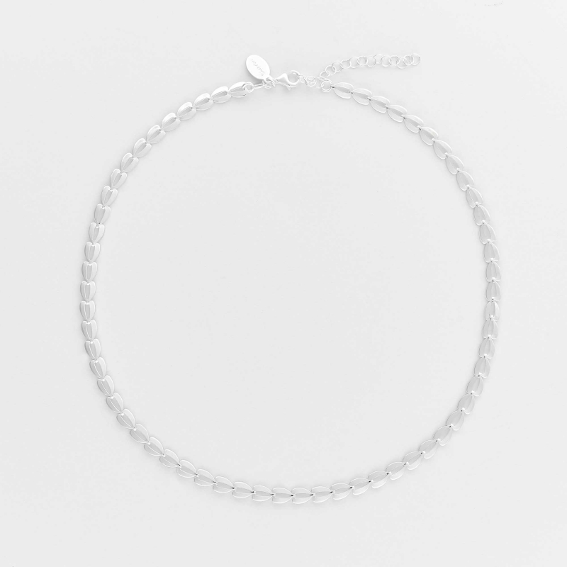 Collier en argent 925 composé de petits coeurs allongés et évidés.
