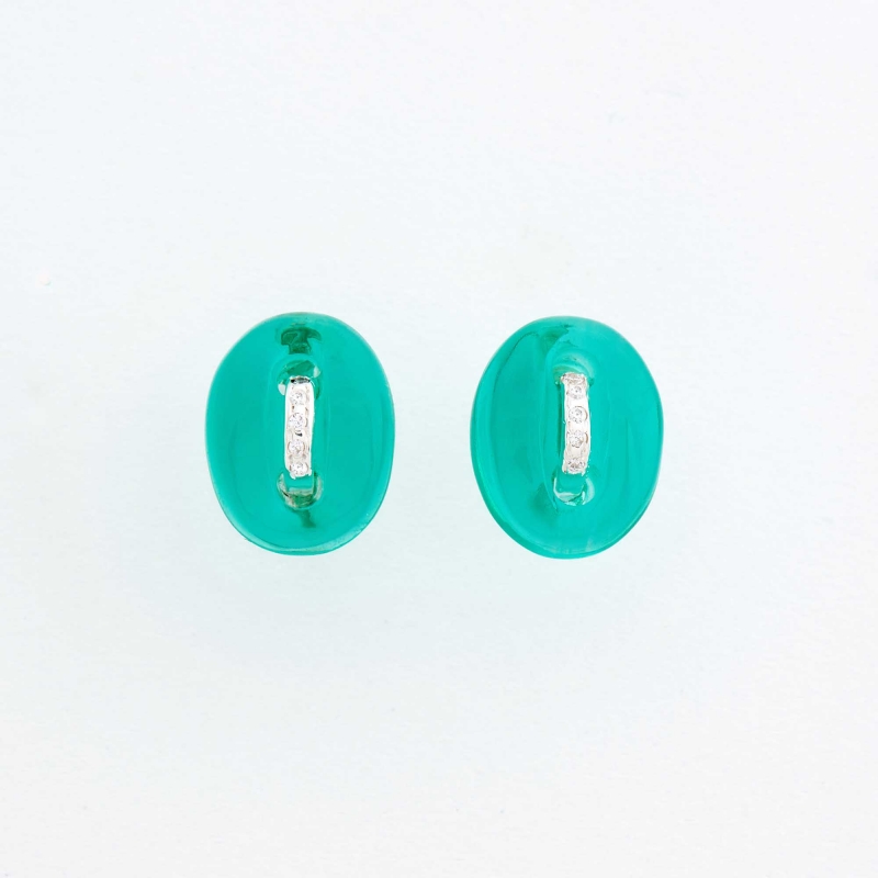 Boucles d'oreille puces composées d'une apatite glass et d'une barre en argent décorée de mini oxydes blancs.