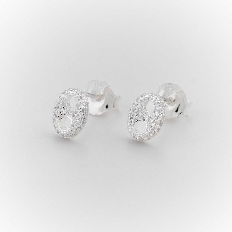 Boucles d'oreilles puces en argent 925 composées d'un petit grain de café pavé d'oxydes.