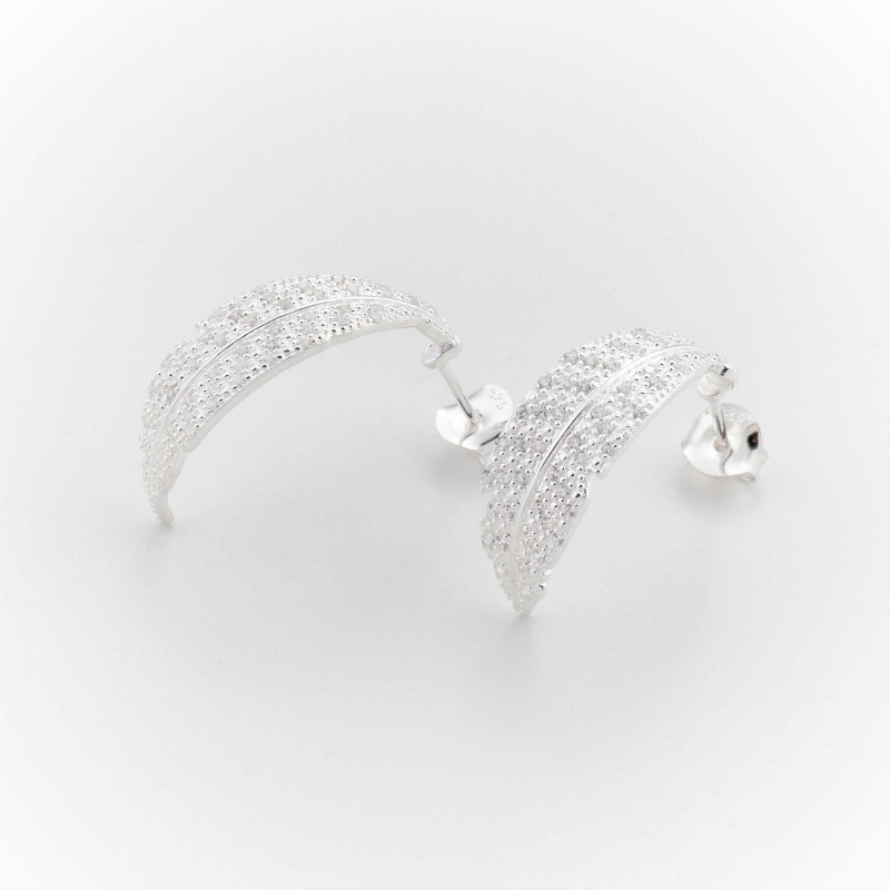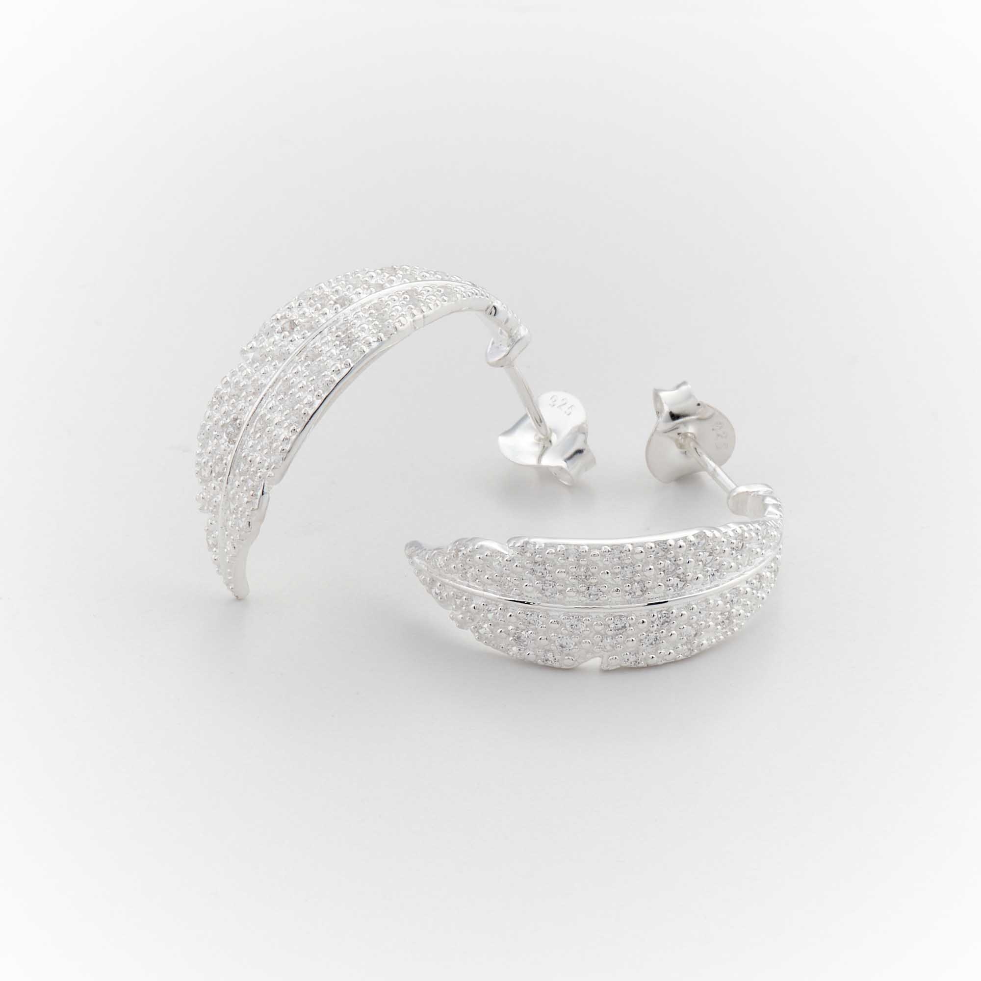 Boucles d'oreilles créoles en argent 925 composées d'une plume ornée d'oxydes.