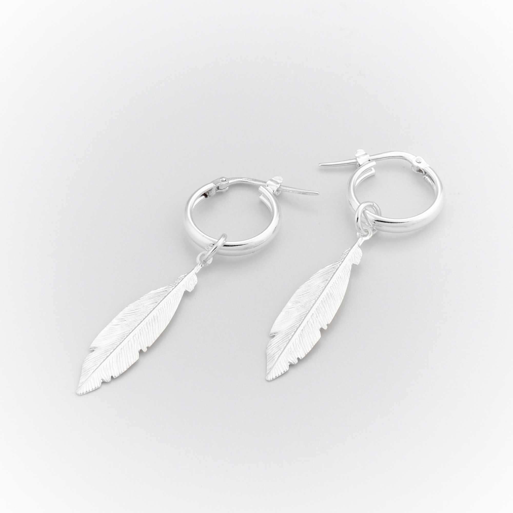 Boucle d'oreilles en argent 925 constituée d'une plume pendant d'une créole.