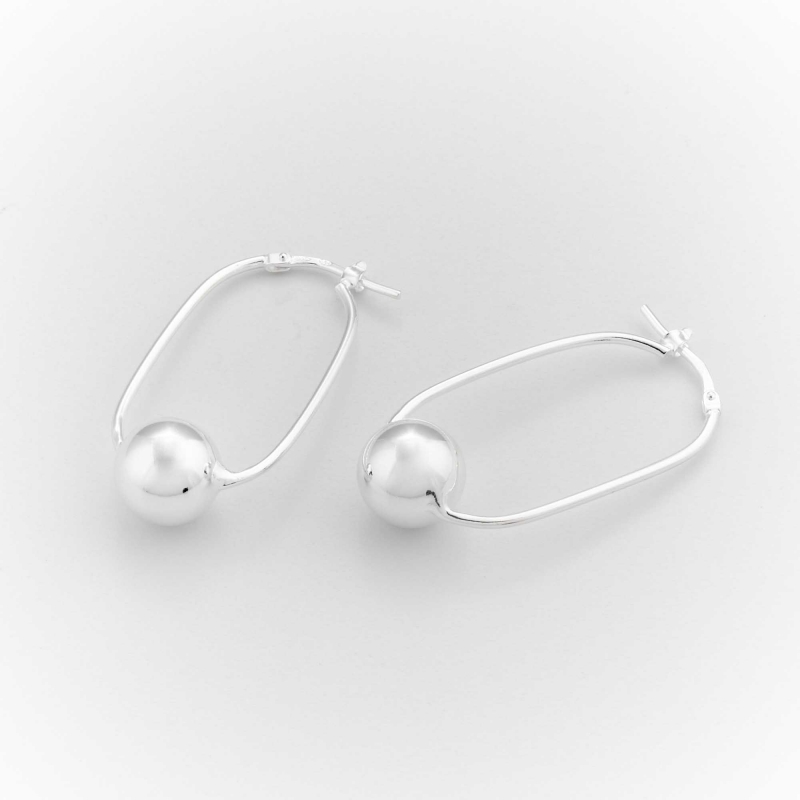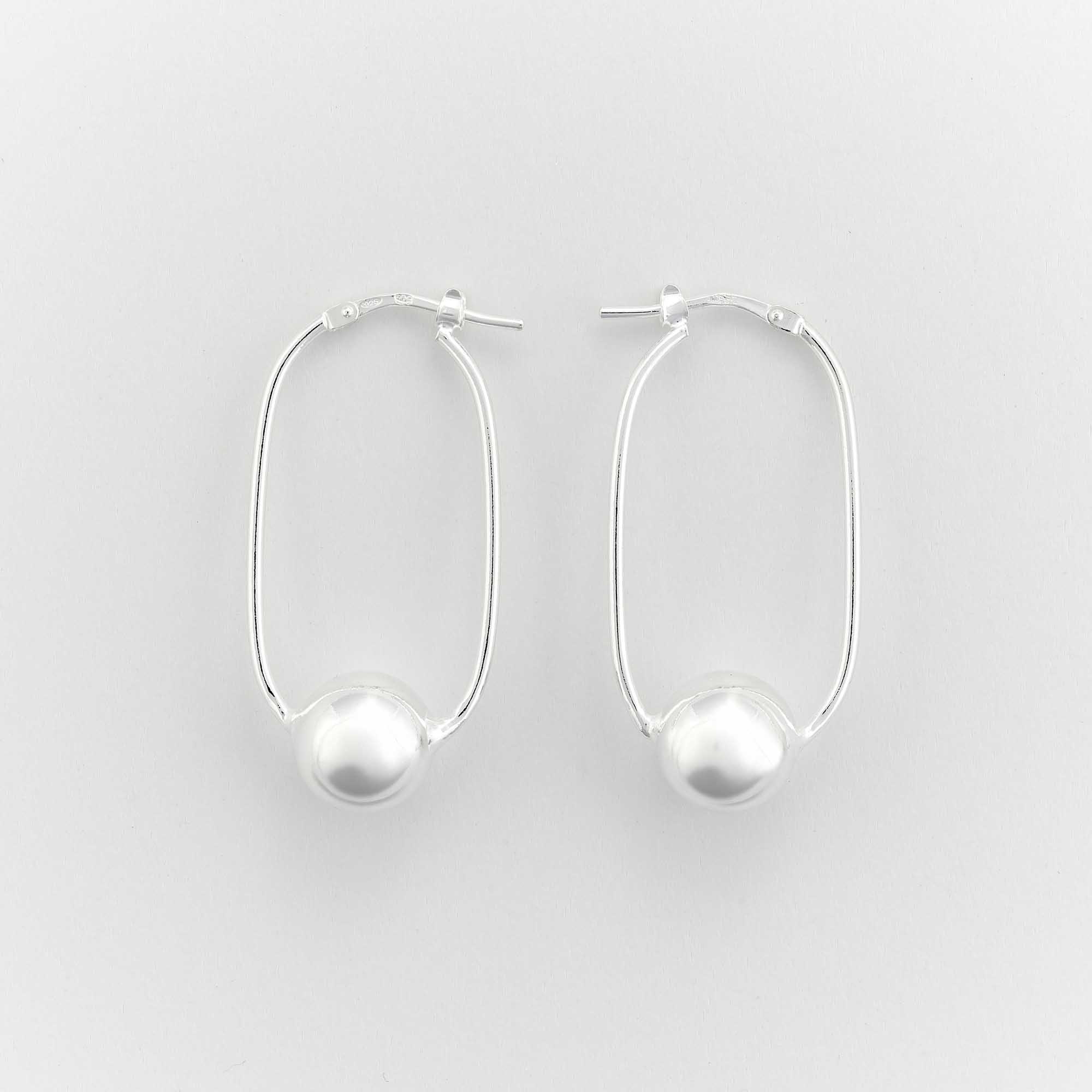 Boucles d'oreilles créoles ovales en argent 925 décorées d'une boule.