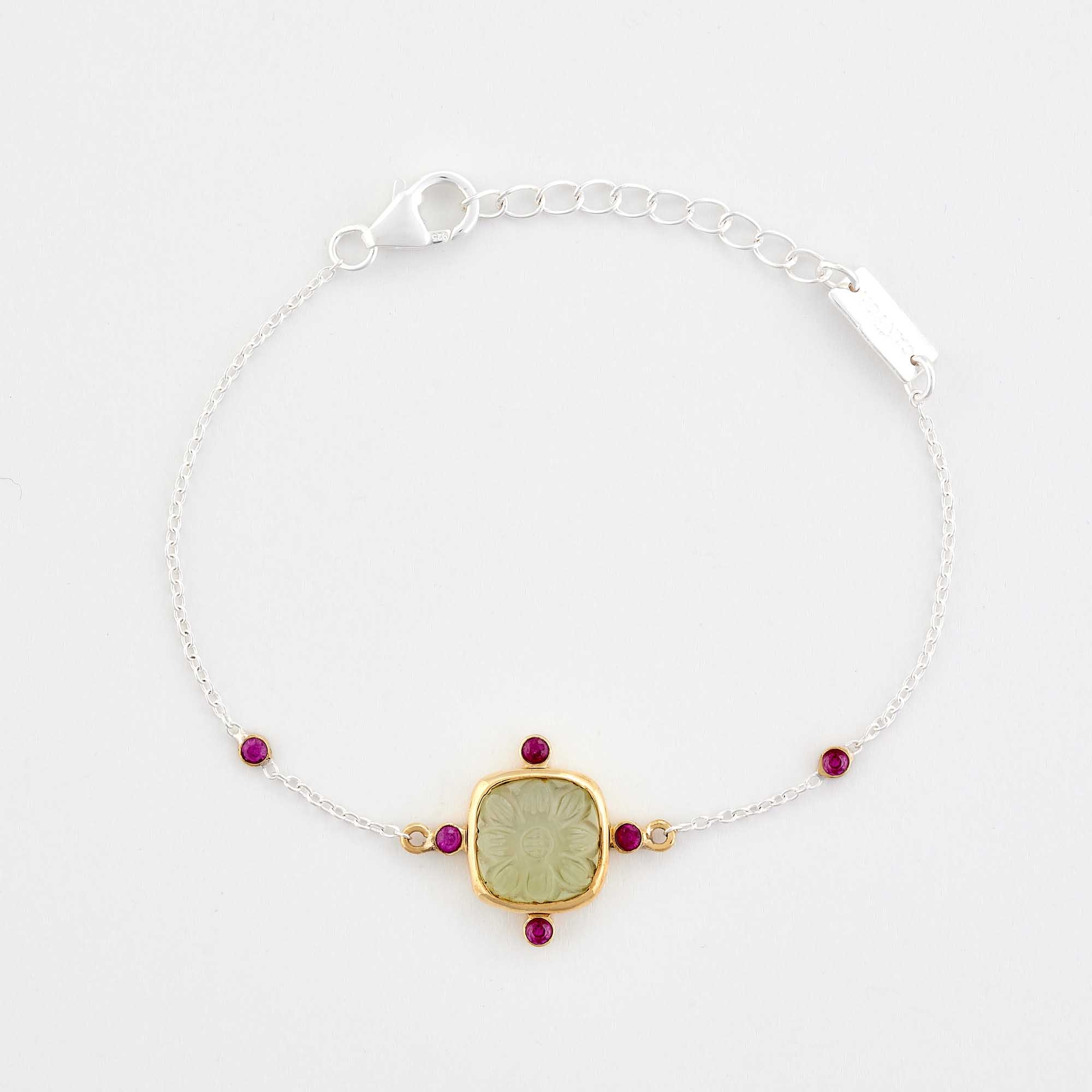 Bracelet en argent composé d'une fine chainette décorée de 3 petites manilles dont une au centre est ornée d'oxydes.