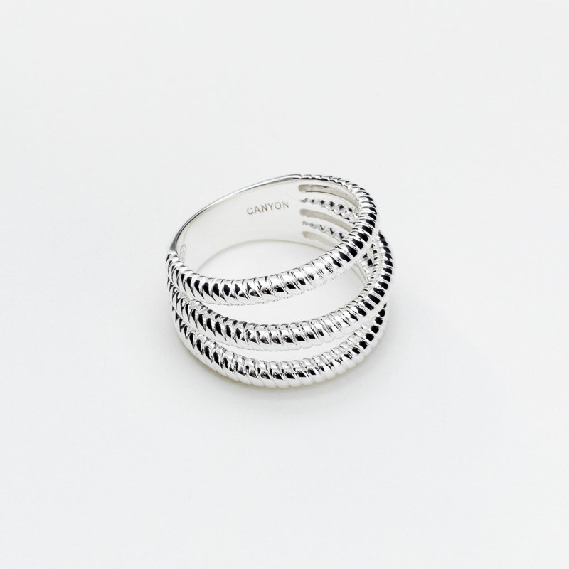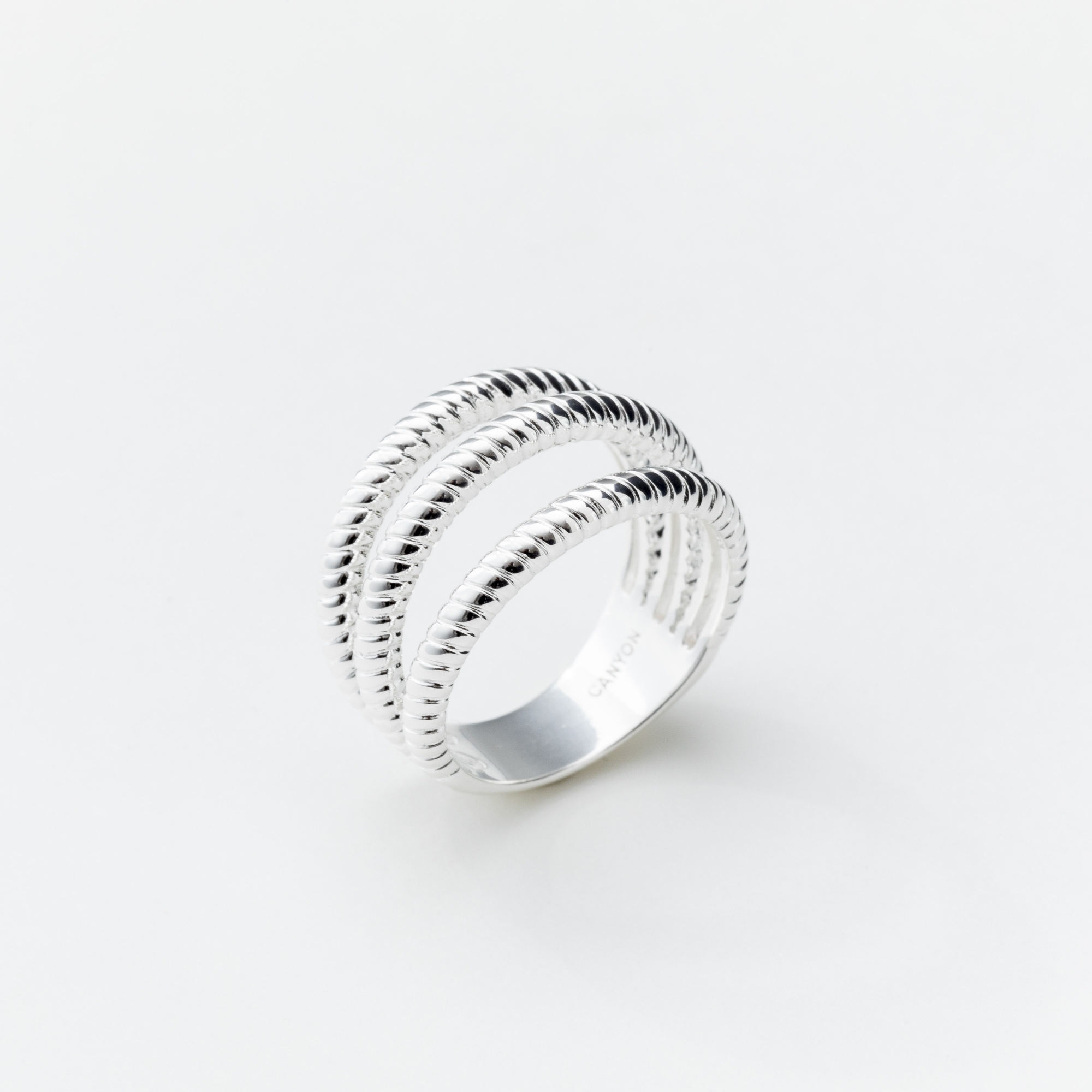 Bague en argent formée de 3 anneaux gravés et espacés.